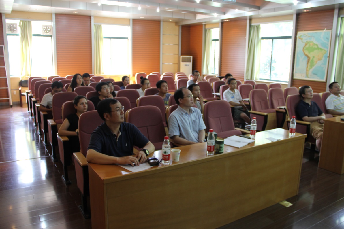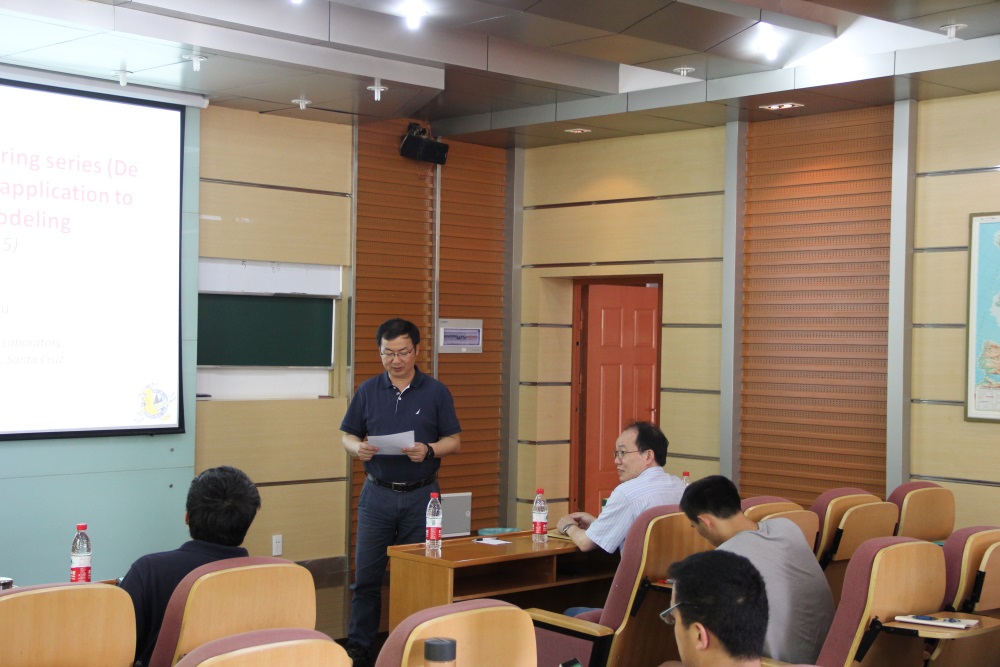 报告开始,best365官网登录入口院长陈汉林教授先对吴教授做了简单的介绍并对吴教授的来访表示热烈的欢迎,然后吴教授做了题为《Renormalized scattering series (De Wolf series) and its application in waveform modeling 》的报告。在这次报告中,吴教授提出了采用重整化理论上的优势,它是一种物理上的近似,能更精确的模拟地震波的传播过程,将该 De Wolf近似方法用于直接非线性反演能取得较好的效果。