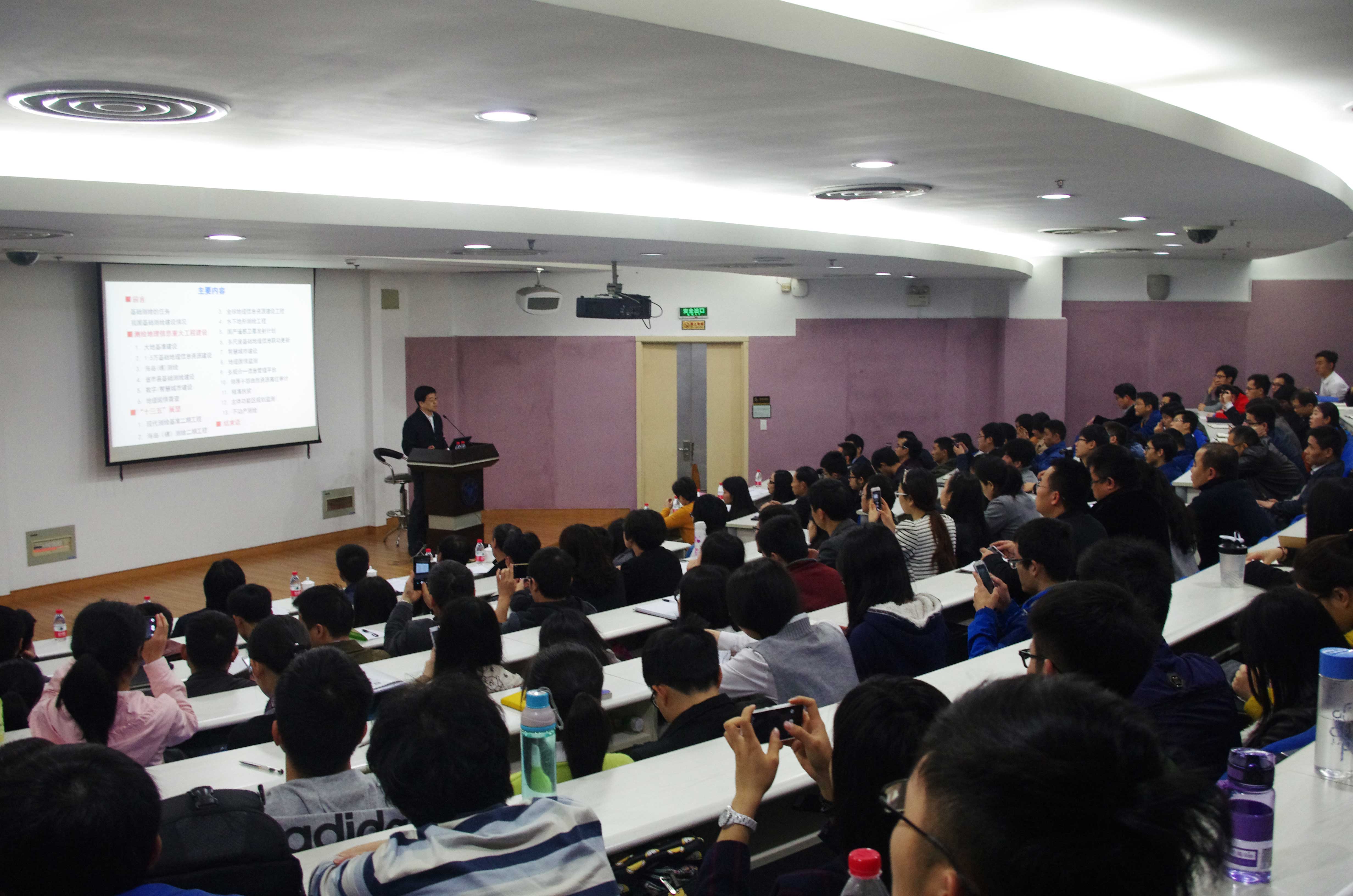 一个多小时的报告,参会人员思路跟随李维森副局长的报告,仿佛快速地浏览了国家测绘地理信息行业的发展现状和未来趋势,同学们也从智慧城市建设中的跨部门数据协同管理、信息共享、信息安全和地理国情普查与自然资源与地理空间基础信息在数据重复采集等角度踊跃提问。在李维森副局长的一一解答中,大家也深刻领会到重大工程建设现阶段确实存在着技术和管理方面的问题和难题,但是“一口吃不成大胖子”,以智慧城市和地理国情为代表等重大工程的建设,必然是一个逐步发展、逐步完善的过程,有赖于所有投身测绘地理信息行业的人员的努力和创新。
