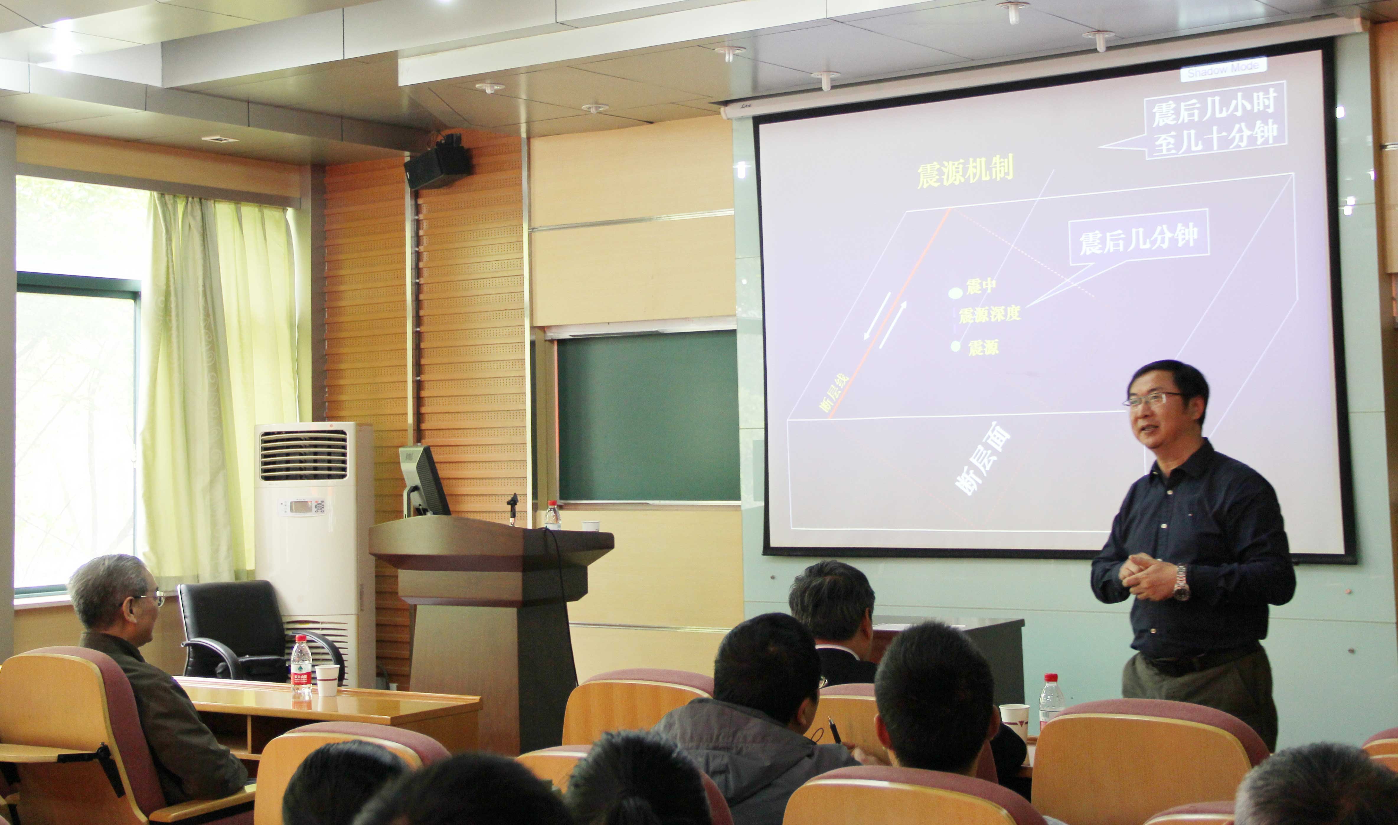 陈运泰院士先为大家简单介绍了地震的发生及震后救灾工作如何根据相应研究分析而开展等的相关知识,然后以2008年汶川地震和2010年青海玉树地震为具体研究实例,详细介绍了地震矩张量及其反演、地震破裂过程快速稳健反演、如何通过研究来模拟和分析地震的发生、预测余震的发生,对针对于两个实例的研究结果也做了相应的论证和评价。反演得到的滑动量集中的片区、地震波能量聚焦的地区常相应于地表面破裂带、极震区。地震破裂过程的快速稳健反演,准实时-实时地获得并公布地震破裂过程的反演结果对于地震应急反应、抗震救灾是非常有用的。之后,陈院士以近年来国内外其他的地震为例,举例并分析了地震破裂过程反演在地震应急反应中的应用,统计表明,反演结果应用提高了地震灾害应急响应时效。