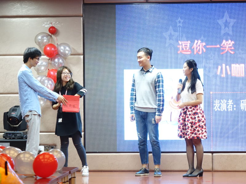 晚会内容由节目和游戏穿插进行。best365官网登录入口DFM街舞社带来的爵士舞激情热辣;刘�和高倩同学带来的吉他伴唱别有味道,刘�更是在大家的欢呼声中即兴自弹自唱一首;熊一璇和王庭刚同学带来的对唱深情款款;研博会同学们带来了重磅“笑弹”——小咖秀,大家卖力的搞笑模仿引得台下的同学们笑声不断,将晚会推向了高潮。游戏环节同样精彩连连,才艺大比拼、借物游戏、抢凳子和团队大协作,游戏形式多样,花样繁多。同学们积极参与游戏,轻松诙谐,优胜和参赛的同学们分别拿到了秋冬温暖的抱枕和签字笔。