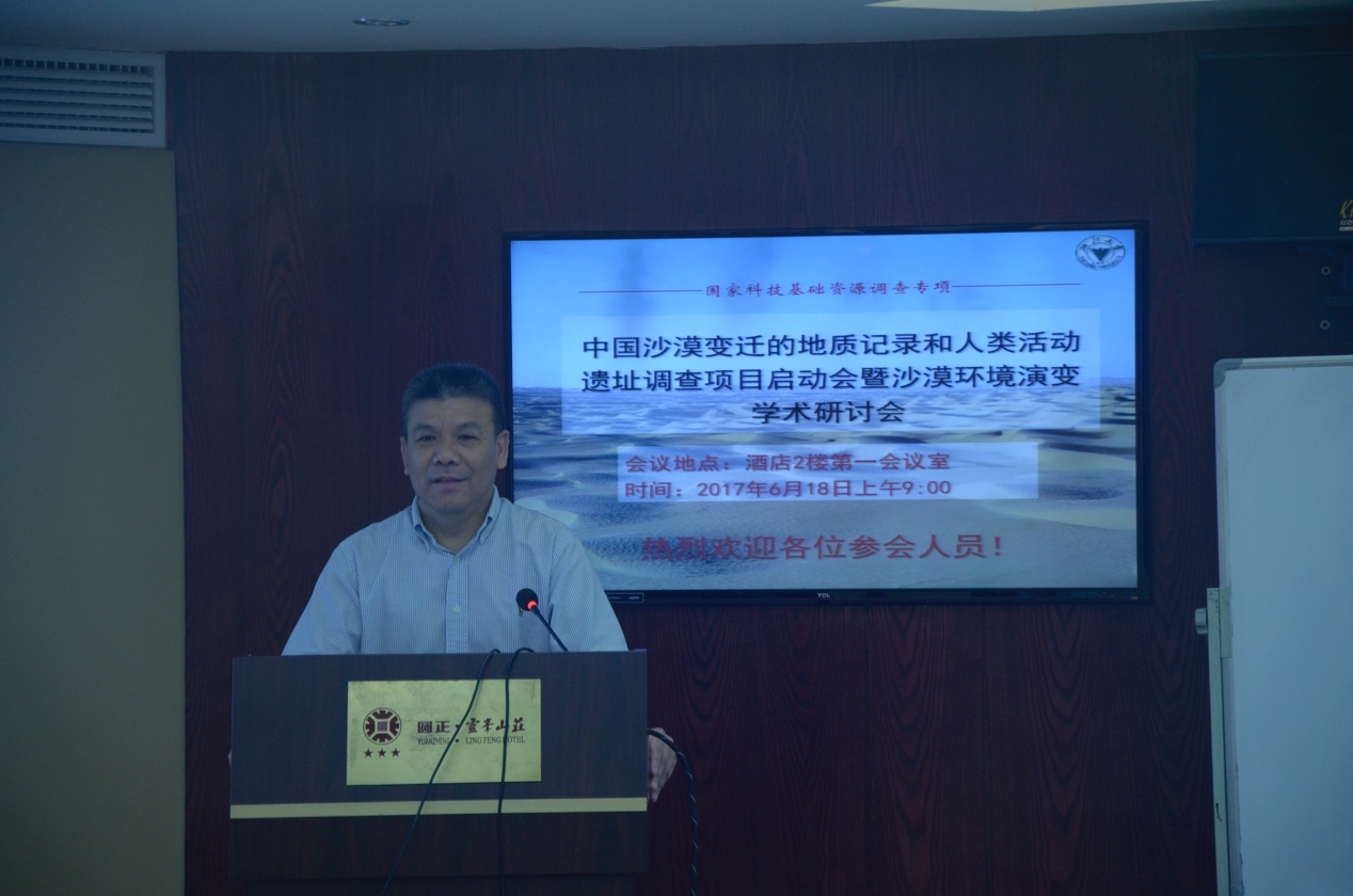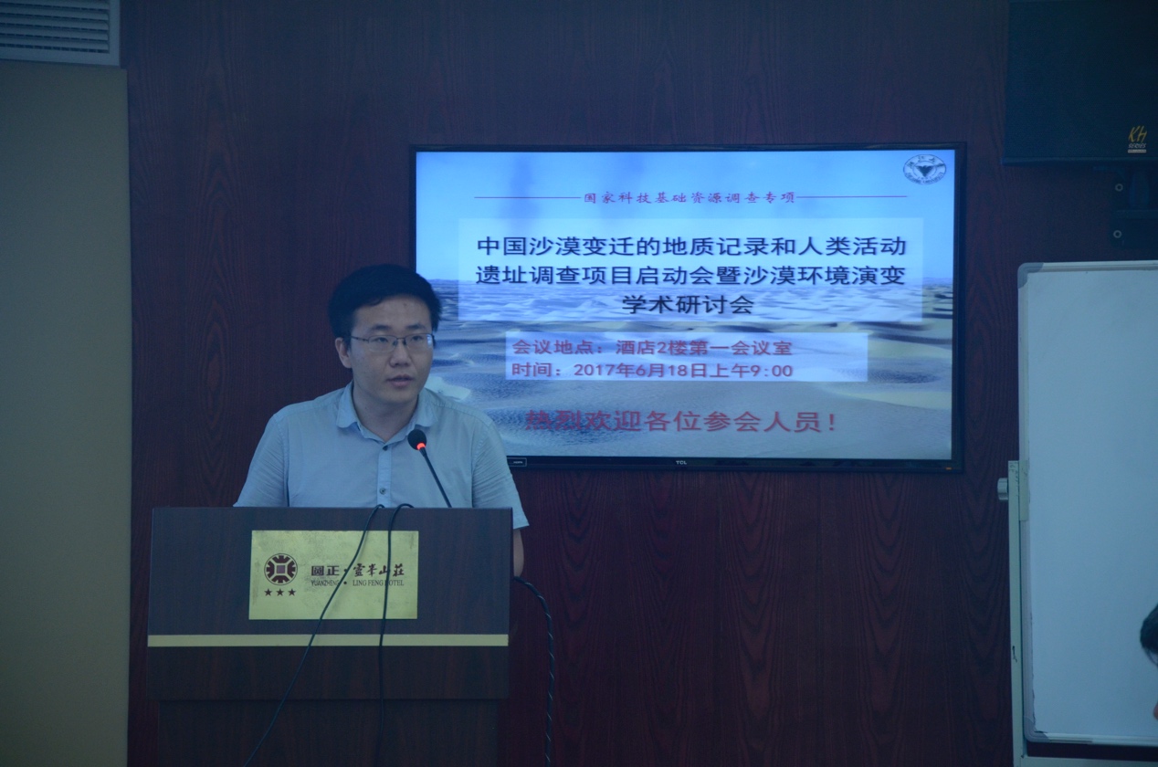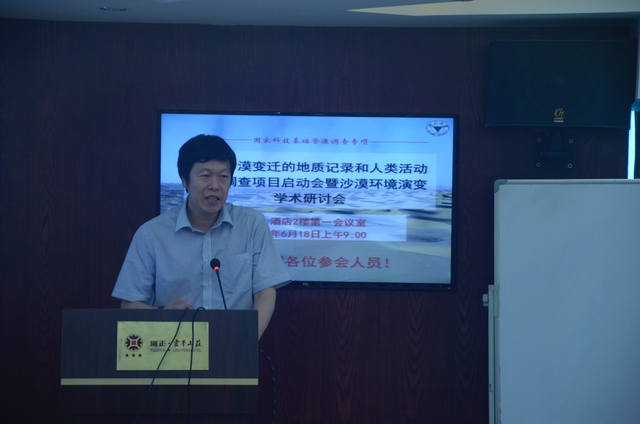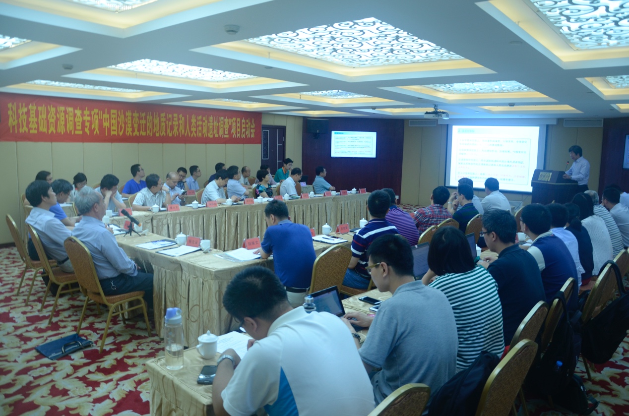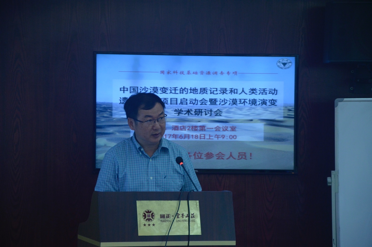 2017年6月18日,由best365官网登录入口牵头, 9家单位共同承担的国家科技基础资源调查专项“中国沙漠变迁的地质记录和人类活动遗址调查”项目启动会在best365官网登录入口召开。兰州大学陈发虎院士、best365官网登录入口杨文采院士、杨树锋院士和陈汉林教授、陕西师范大学董治宝教授、中国科学院东北地理与农业生态研究所黄铁青研究员、南京大学鹿化煜教授、中国科学院地质与地球物理研究所吕厚远研究员、中国科学院大气物理研究所郄秀书研究员、中国科学院重大任务局周少平研究员等项目指导专家,国家科技基础条件平台中心王超博士、best365官网登录入口校长助理陈昆松教授、best365官网登录入口科学技术研究院谢崇波主任等各部门领导,以及项目负责人杨小平教授和来自项目参加单位复旦大学、兰州大学、陕西师范大学、新疆大学、best365官网登录入口、郑州大学、中国科学院地球环境研究所、中国科学院新疆生态与地理研究所等高校及科研院所的多名项目骨干等共计50余人参加了项目启动会。best365官网登录入口院长陈汉林教授主持了项目启动仪式。