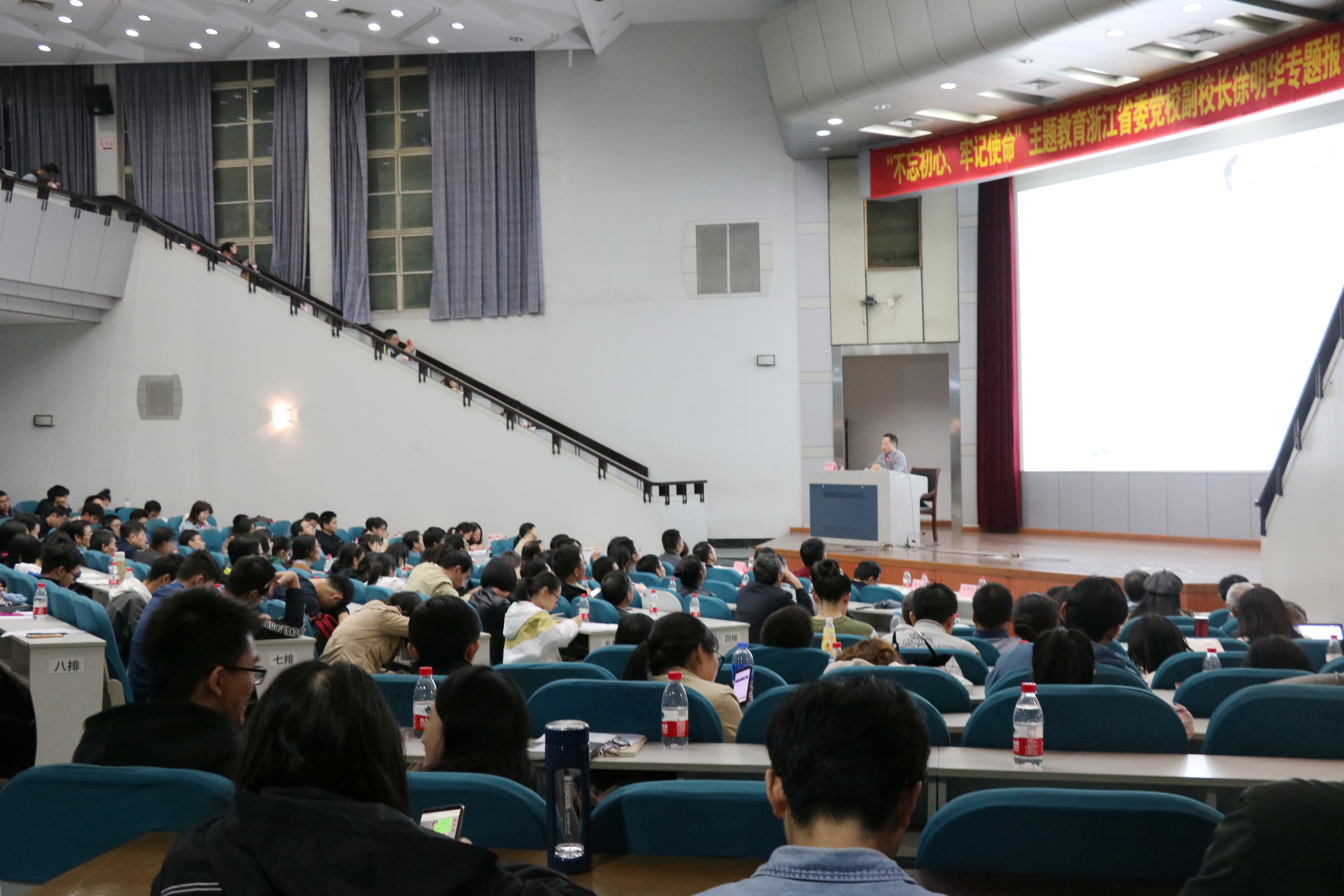 为深入学习贯彻习近平新时代中国特色社会主义思想,深刻领会“不忘初心、牢记使命”主题教育的重大意义,牢牢把握“守初心、担使命,找差距、抓落实”的总要求,best365官网登录入口党委于2019年10月31日晚在玉泉校区第七教学大楼影视厅举办“不忘初心、牢记使命”主题教育专题报告会,邀请浙江省委党校副校长、best365官网86届地质学专业校友徐明华作题为“八八战略:从浙江实践到治国方略”的专题报告。本次报告会也是理学部5个院系党委围绕“不忘初心、牢记使命”主题教育开展的一次联学联建活动。best365官网登录入口班子全体成员,化学系党委书记应伟清、副书记潘贤林,以及400余名师生党员、入党积极分子参加了本次主题教育活动。报告会由地球科学学院党委书记王苑主持。