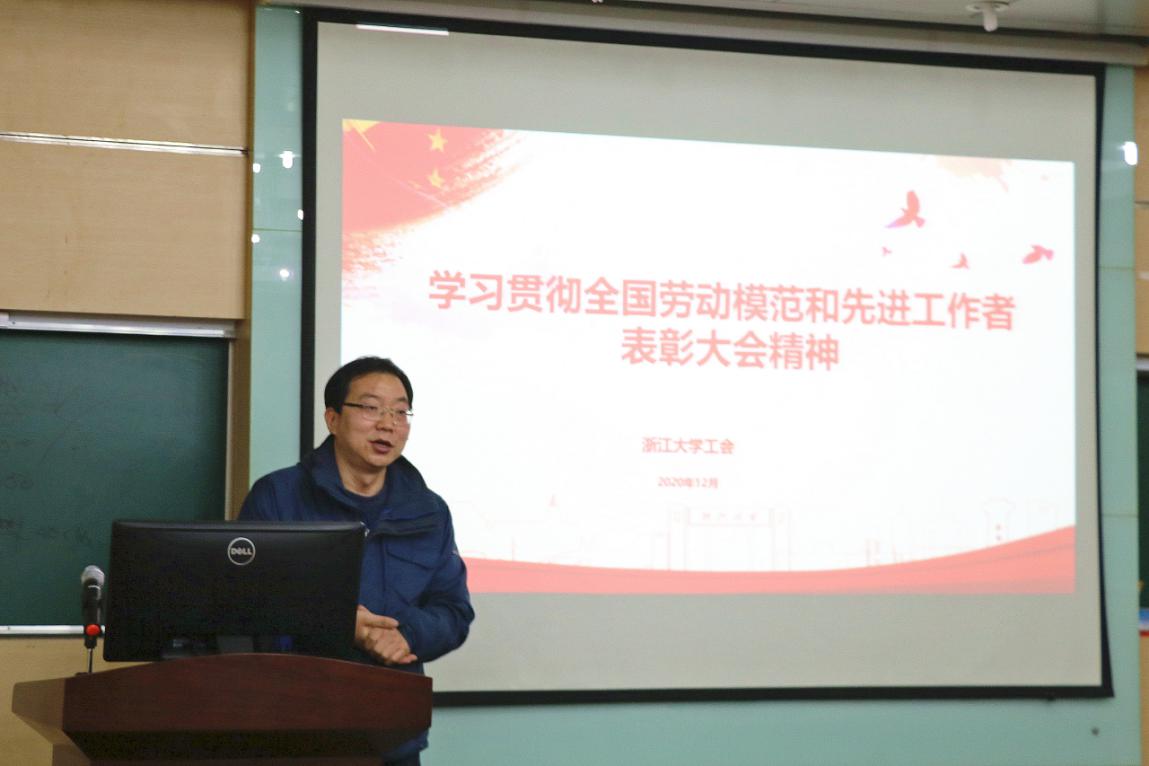 陈宁华在“学习贯彻全国劳动模范和先进工作者表彰大会精神”的报告中带领大家重点学习了习近平总书记在全国劳动模范和先进工作者表彰大会上的重要讲话精神,认真学习了全国人大常委会副委员长、全国总工会主席王东明在学习贯彻习近平总书记重要讲话精神座谈会上的讲话精神,认真学习了省委书记袁家军看望劳模先进时的讲话和省委常委、组织部长黄建发在劳模座谈会上的讲话精神,认真学习了校党委书记任少波在best365官网登录入口全国先进工作者座谈会上的讲话精神,并学习传达了浙江省委党的群团工作会议精神。