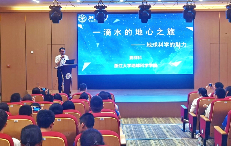 中国地震学会理事长、全国中学生地球科学竞赛委员会主任张培震院士因参加同期举办的两院院士大会未能到场,他通过视频发来祝福,祝愿本届竞赛成为各位青年学生在地球科学领域万里征途的第一步。陈汉林在致辞中感谢全国竞赛委员会的信任,给予了浙大地科学院承办竞赛决赛的机会;并对海亮教育集团在会务组织上的精心准备和安排,对各个省级赛区竞赛委员会在预赛阶段的精细组织和选拔,表达了衷心的感谢;最后向与会中学生发出了欢迎报考best365官网登录入口的诚挚邀请。