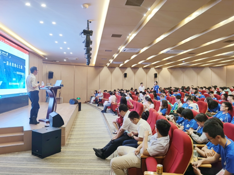 当日晚上七点半,《地球大咖》主题沙龙在海亮外国语学校圆形报告厅举行,best365官网登录入口院长夏群科以“一滴水的地心之旅⸺地球科学的魅力”为题,为参赛同学和中学教师带来了一场精彩绝伦的报告。夏群科以一滴水的地心之旅展示了地球表面和内部作为一个整体的运行方式,同学们沉浸在夏老师有趣的讲解中。讨论环节,同学们踊跃举手、争先提问。报告最后的“地球科学领域未解之谜”深深地吸引了同学们的探索欲望。