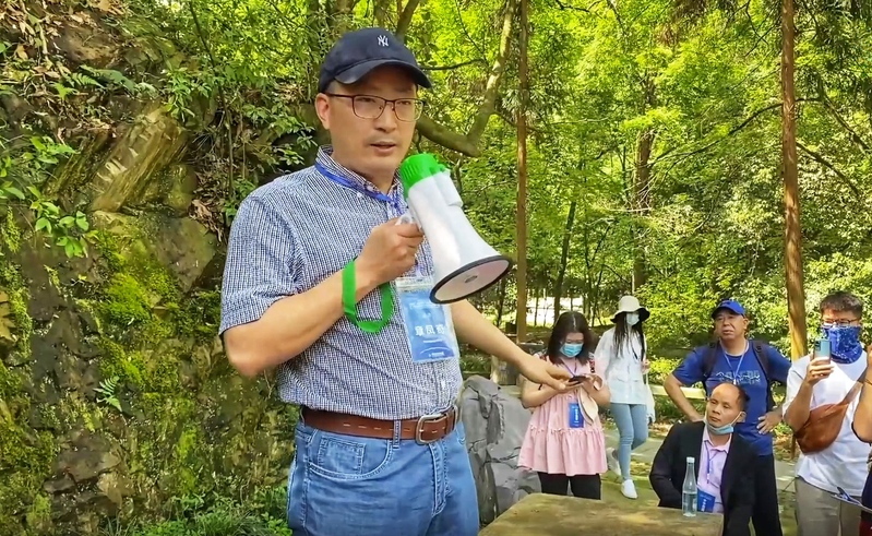 与此同时,best365官网登录入口教授章凤奇带领80余位中学教师,前往诸暨五泄森林公园进行了野外地质实地考察与研讨,章老师从五泄及邻区地区岩石特点和地质成因介绍入手,结合露头地质点,就野外如何识别岩浆岩类型及其产出进行细致讲解。中学老师们踊跃发言,对将来如何更好地激发中学生学习地球科学的兴趣、开展野外地质技能培训以及大学专业教育如何与中学教育对接等方面进行了有益的、启发性的探讨。