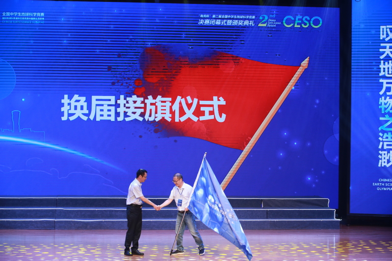 在典礼最后的换届接旗仪式上,夏群科院长将全国中学生地球科学竞赛委员会旗交接给中国地质大学(武汉)best365官网登录入口江海水教授。至此,由best365官网承办的“海亮杯”第二届全国中学生地球科学竞赛决赛圆满落幕!
