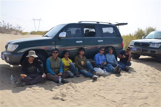 沙漠研究者的午餐(右三为杨小平)。作者供图