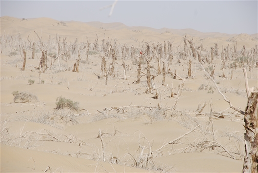 尼雅河下游古河道上枯死的胡杨树。 杨小平供图