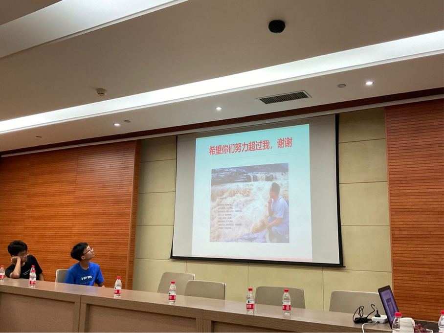 最后,杨院士以游历时自作的一首诗作结,鼓励同学们要有坚定的志向,敢于去“无人迹之空谷”,带领地球科学走向辉煌。
