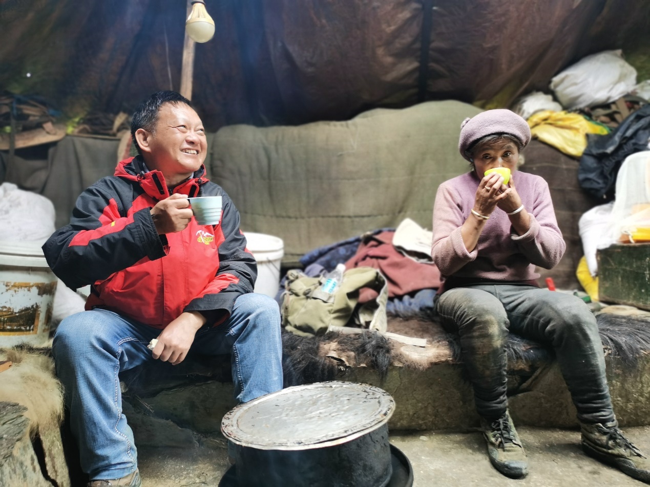 人社部组织留学回国专家团赴西藏对口服务,在牧民家品尝奶茶
