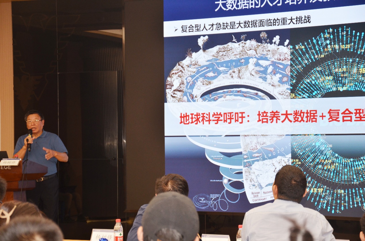 之后,杨院士简单讲述了地球科学研究范式革命,以习近平总书记在两院院士大会上的讲话为引,指出研究范式的深刻变革是学科交叉融合不断发展,科技与经济社会发展渗透融合。同时,他指出,我们的研究处于大数据范式,在报告尾声,杨院士强调,地球科学研究需要“大数据+”的复合型人才。