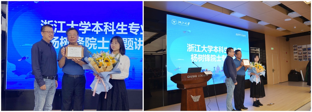 活动最后,求是学院邱利民院长向杨树锋院士赠送感谢状,丹阳学园学生代表向杨院士献花,历时2个多小时的报告在大家一片热烈的掌声中落下帷幕。