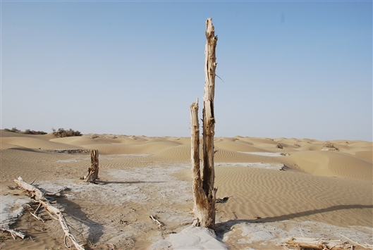 塔克拉玛干沙漠腹地沙丘景观 杨小平供图塔克拉玛干沙漠腹地沙丘景观,可见古水文遗迹及枯死的胡杨树 。杨小平拍摄于2015年9月“你这教授当的,连中午饭都吃不上。”杨小平...