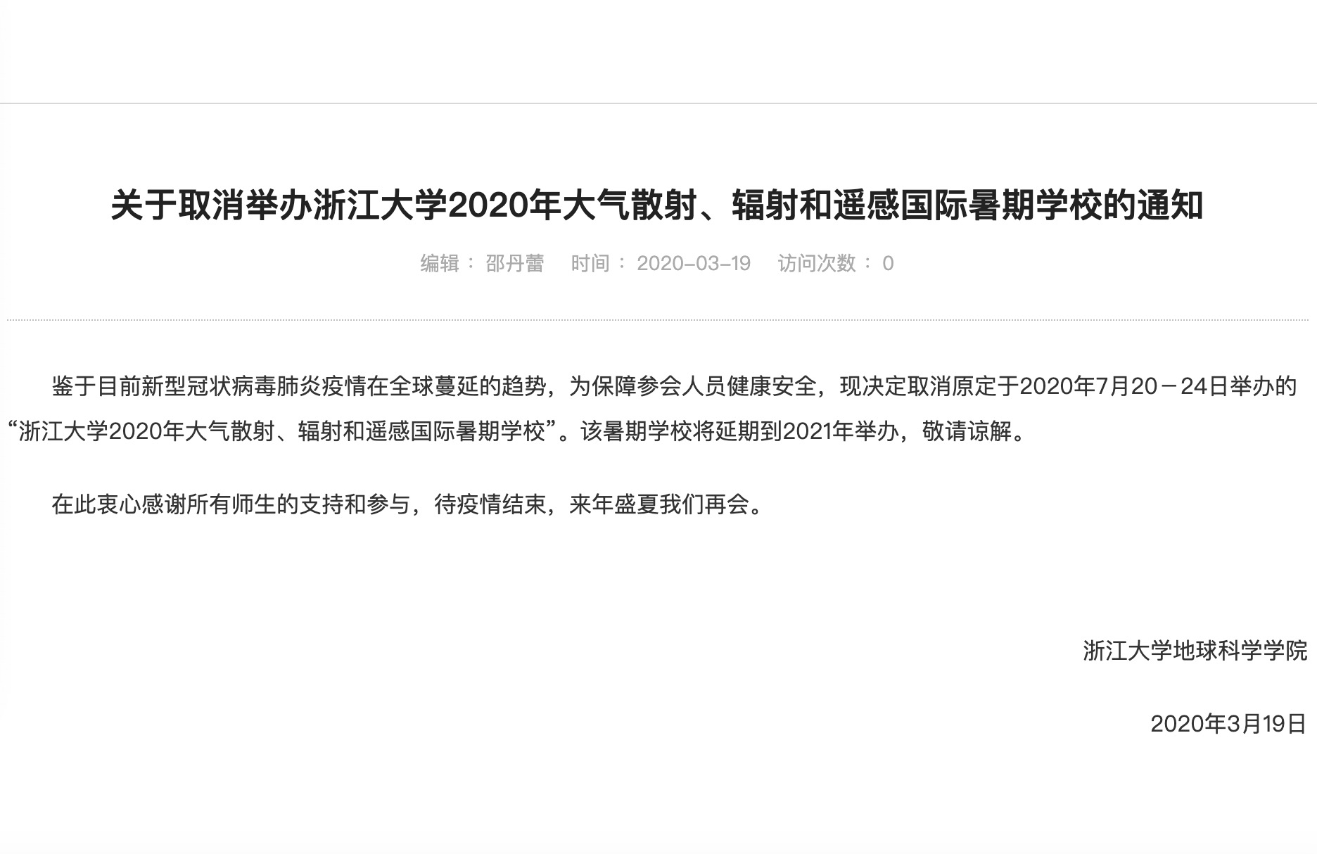 鉴于目前新型冠状病毒肺炎疫情在全球蔓延的趋势,为保障参会人员健康安全,现决定取消原定于2020年7月20-24日举办的“best365官网登录入口2020年大气散射、辐射和遥感国际暑期学校”...