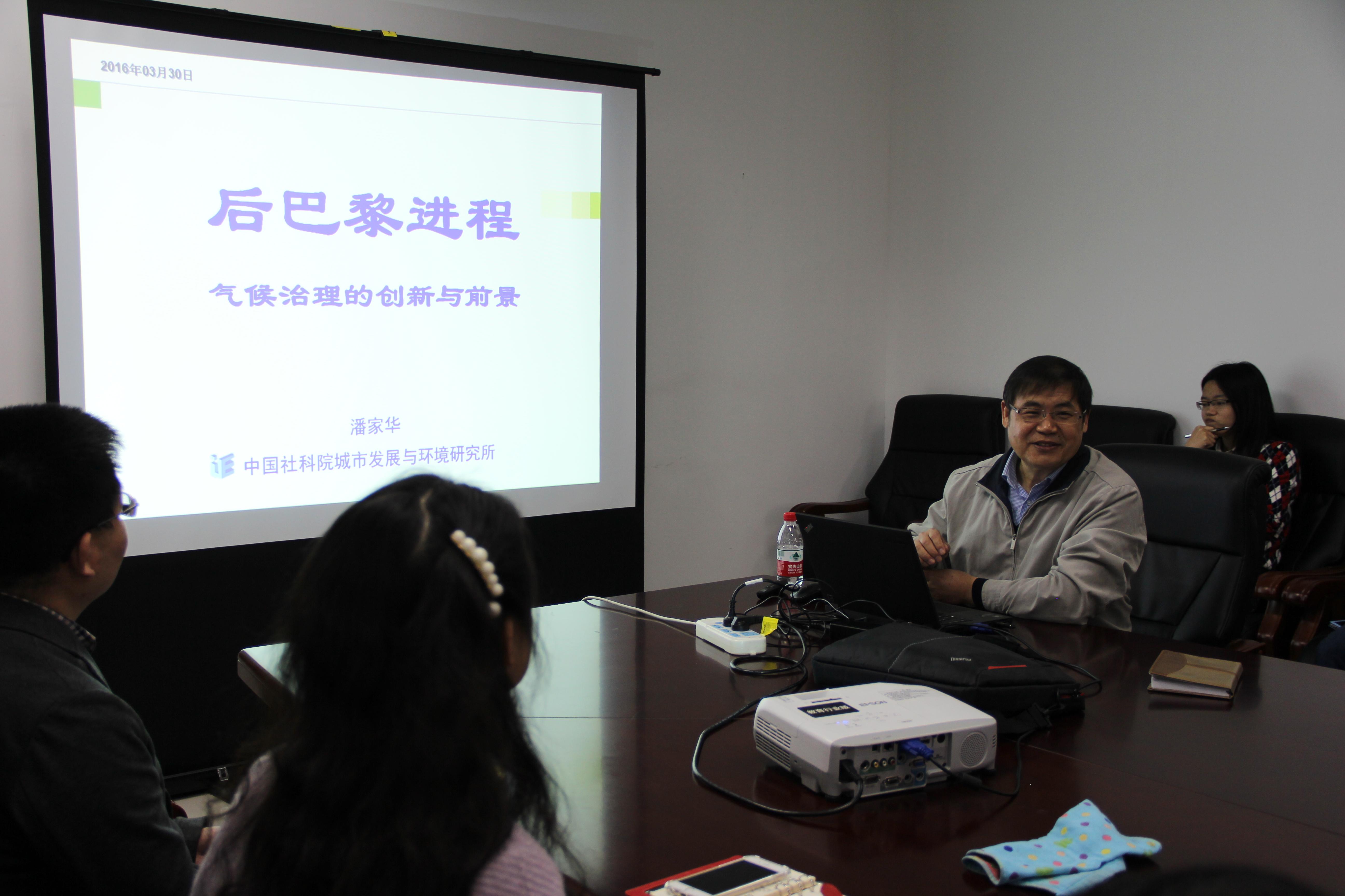 3月30日下午15时,中国社科院城市发展与环境研究所的潘家华所长、陈迎教授等七位老师莅临best365官网登录入口,潘家华所长为地科系的老师和同学们带来了主题为“后巴...